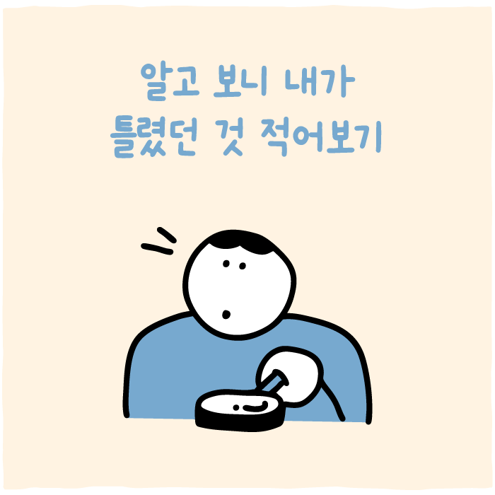 지혜롭게 나이 들기 위해서는 나이가 들면 점점 강해질 수 있는 ‘내가 옳다’라는 아집으로부터 자유로워져야 해요. 나이를 먹으며 쌓이는 경험은 우리를 성숙하게 만들 수도 있지만 한편으로는 내가 경험한 세상 밖의 삶을 인정하지 못하게 할 수도 있다는 것을 받아들여야 하는 거죠. 그래서 이번 주에는 알고 보니 내가 잘못 알고 있었던 것, 내가 틀렸던 것, 내가 너무 좁게 바라보고 있었던 것이 무엇인지 탐구해 보도록 해요. 내가 틀릴 수도 있다는 것, 틀렸다는 것을 인정하는 것은 내 세상을 좀 더 확장하게 도와주고 유연하게 세상을 만날 수 있도록 도와줄 수 있어요.
